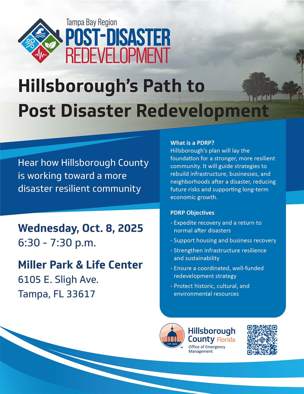 Hillsborough’s plan will lay the foundation for a stronger, more resilient community. It will guide strategies to rebuild infrastructure, businesses, and neighborhoods after a disaster, reducing future risks and supporting long-term economic growth.
